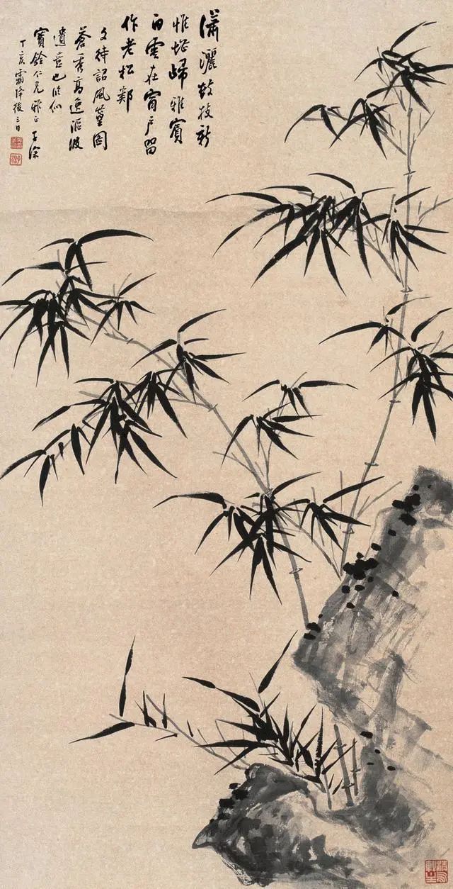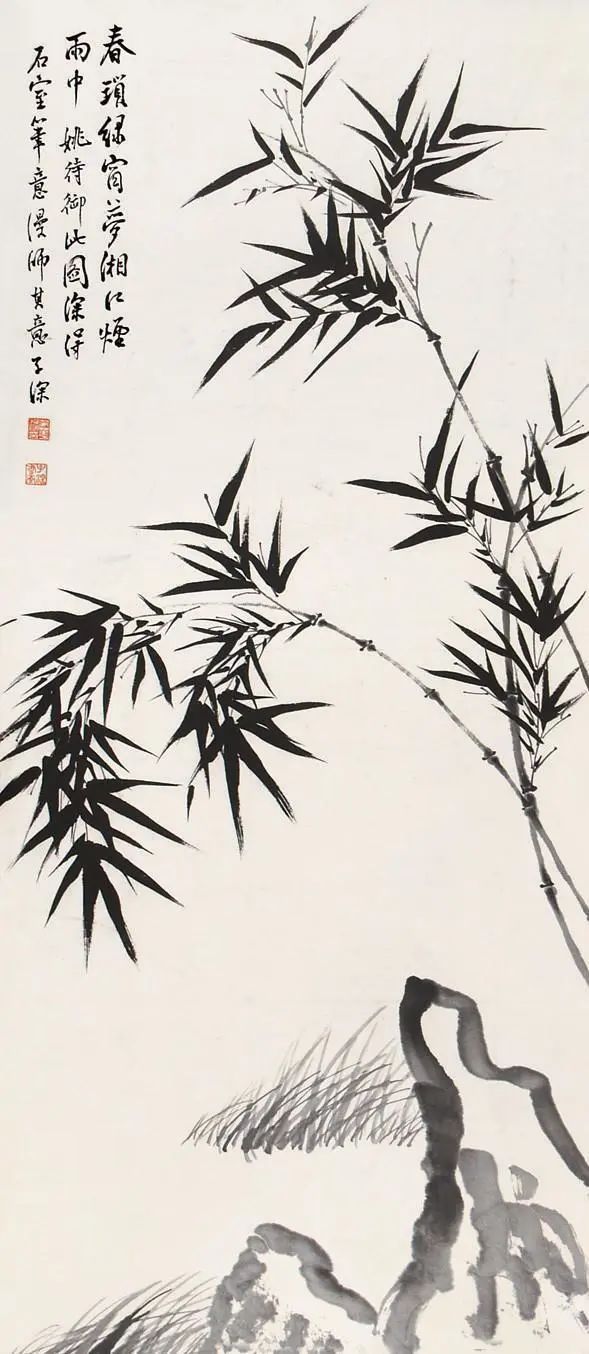 他突破传统水墨的二元对立,以"淡墨渲染"与"宿墨点厊"交织出竹的层次。新篁用淡绿浸染,似春水初生;老竹以赭石皴擦,如秋山暮色。更妙的是那若隐若现的"飞白",仿佛竹影投在宣纸上的斑驳光痕,让画面在虚实之间生出雾里看花的朦胧美。这种"清而不薄,雅而不弱"的墨色运用,恰如他题画所云:"墨浓处是山,淡处是云,不浓不淡处是竹的魂。"