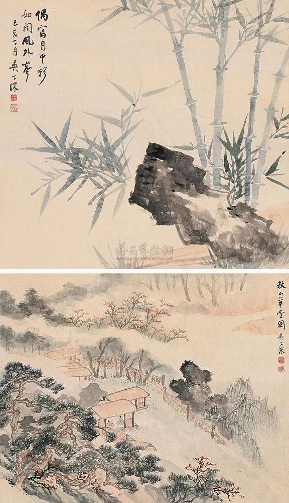 吴华源笔下的竹,是晨雾中凝着露珠的诗行,是月光下摇曳生姿的琴音。这位近代吴门画派的传人,以"清雅"二字为竹写魂,在烟墨与素纸间构筑起一个超脱尘俗的精神世界。