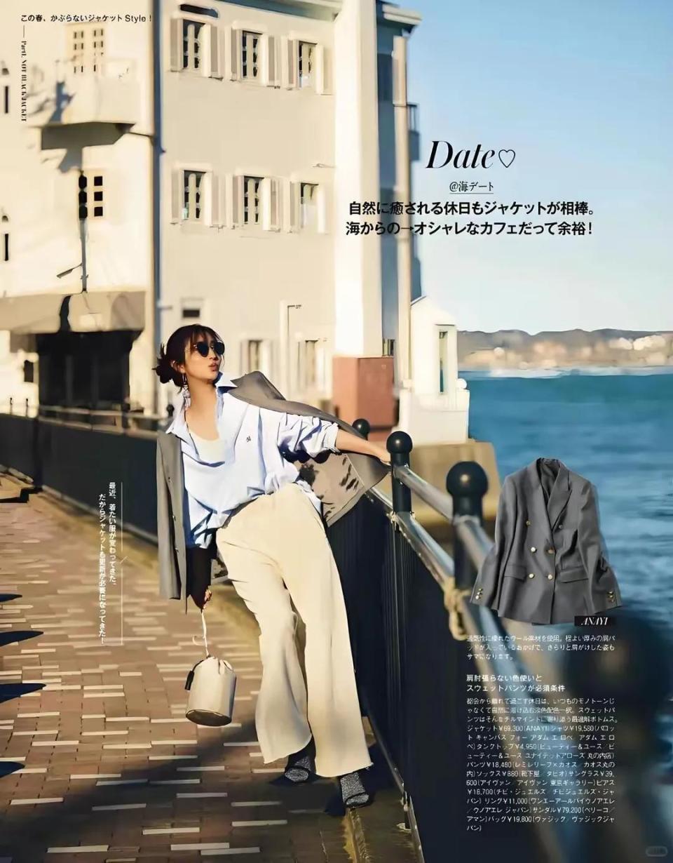 所以说穿衣打扮要根据自己的身材比例而定,有的时候可能身材微胖,骨架比较大,选择的阔腿裤版型会大一些,但是个子小巧又喜欢穿阔腿裤的情况下,我们就没有必要选择太大的阔腿裤,留下面用浅蓝色的衬衫搭配上杏色的阔腿裤,再加上灰色的西服外套,这一身穿衣打扮就很适合小个子女性穿搭。