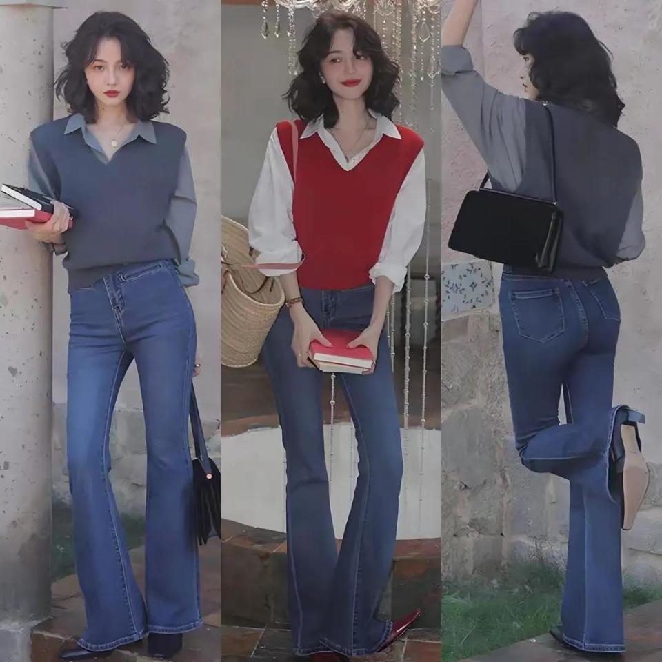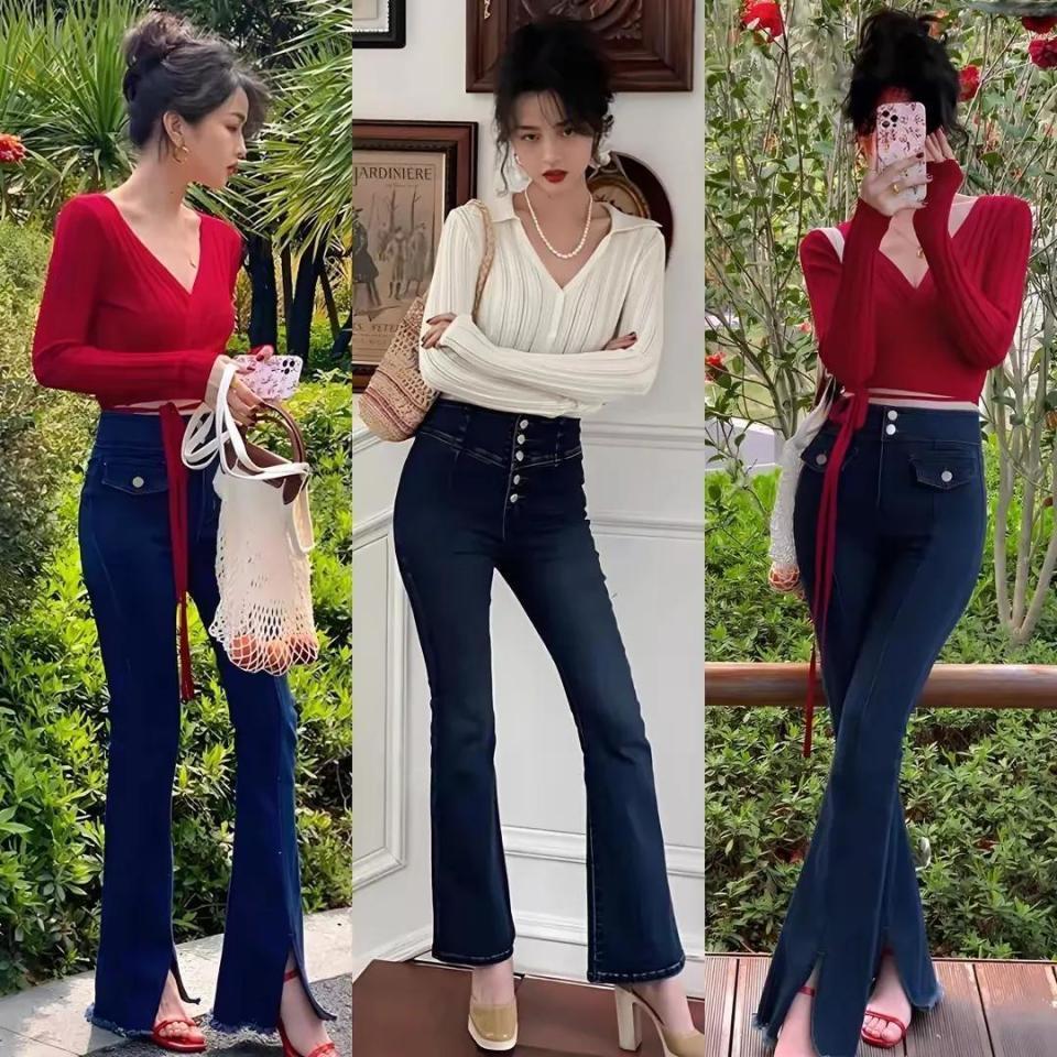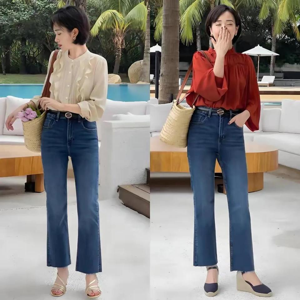 一条适合自己身材的裤子至关重要,选对裤子的版型能让咱们显高显瘦又显得腿长,例如下面这位达人用一件薄款的针织衫搭配上微喇叭牛仔裤,脚上穿了一双高跟凉鞋,轻松穿出高挑显瘦的身材,展露自己的小蛮腰和大长腿,变得更加抢眼抢镜。
